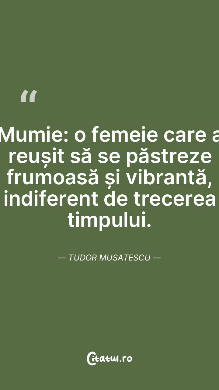 Mumie: o femeie care a reușit să se păstreze frumoasă și vibrantă, indiferent de trecerea timpului. Tudor Musatescu