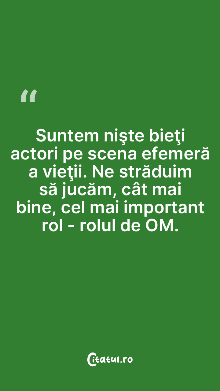 Suntem nişte bieţi actori pe scena efemeră a vieţii. Ne străduim să jucăm, cât mai bine, cel mai important rol - rolul de OM.