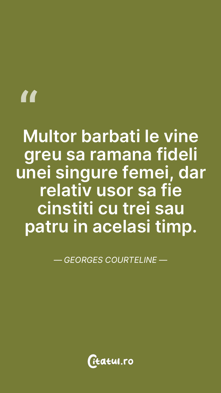 Multor barbati le vine greu sa ramana fideli unei singure femei, dar relativ usor sa fie cinstiti cu trei sau patru in acelasi timp. Georges Courteline