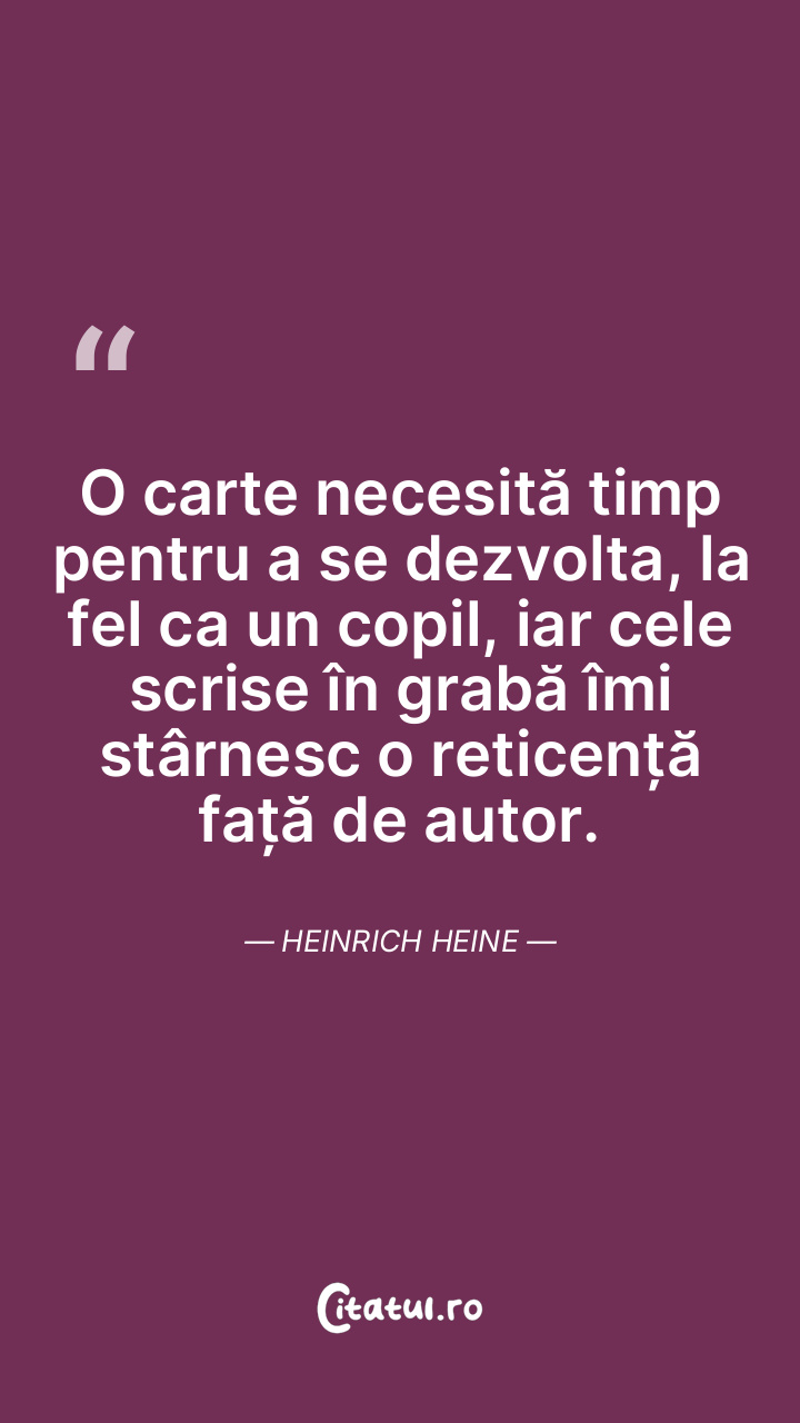 O carte necesită timp pentru a se dezvolta, la fel ca un copil, iar cele scrise în grabă îmi stârnesc o reticență față de autor. Heinrich Heine
