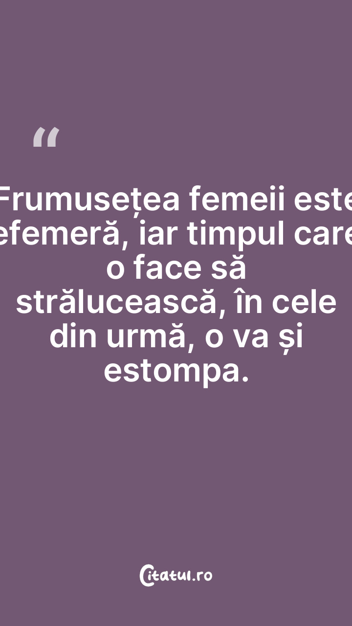 Frumusețea femeii este efemeră, iar timpul care o ...