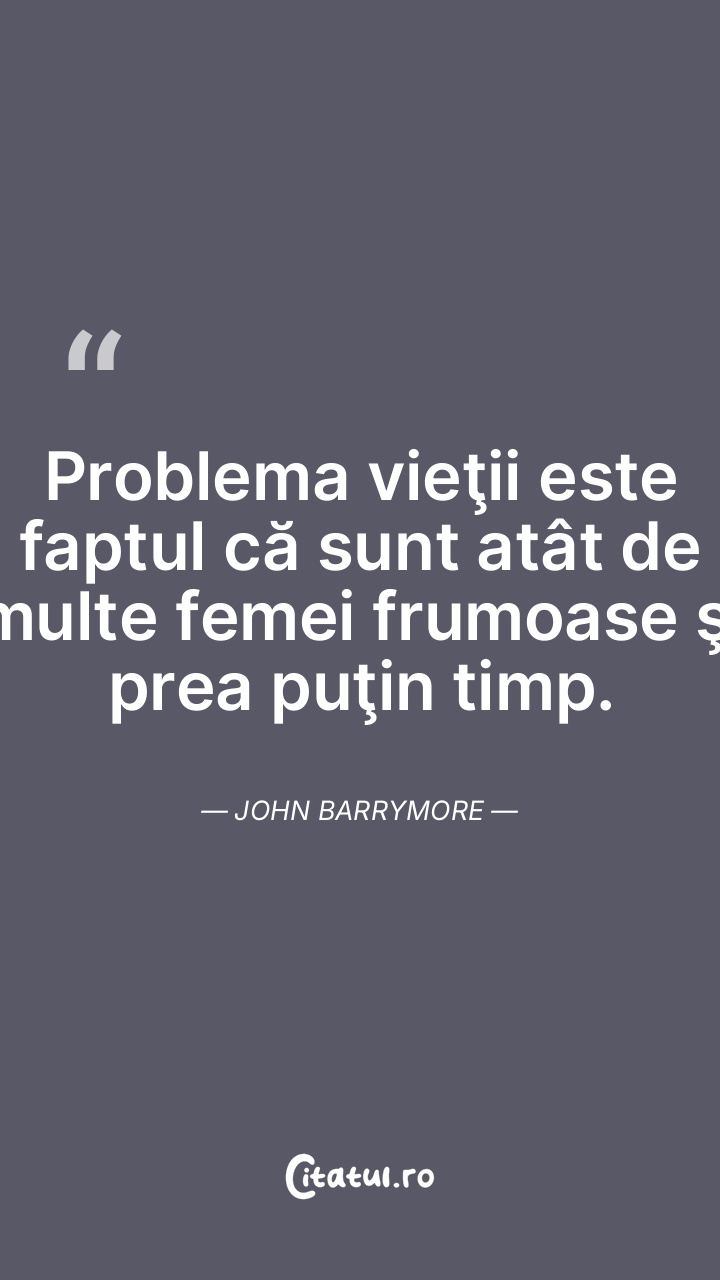 Problema vieţii este faptul că sunt atât de multe femei frumoase şi prea puţin timp. John Barrymore