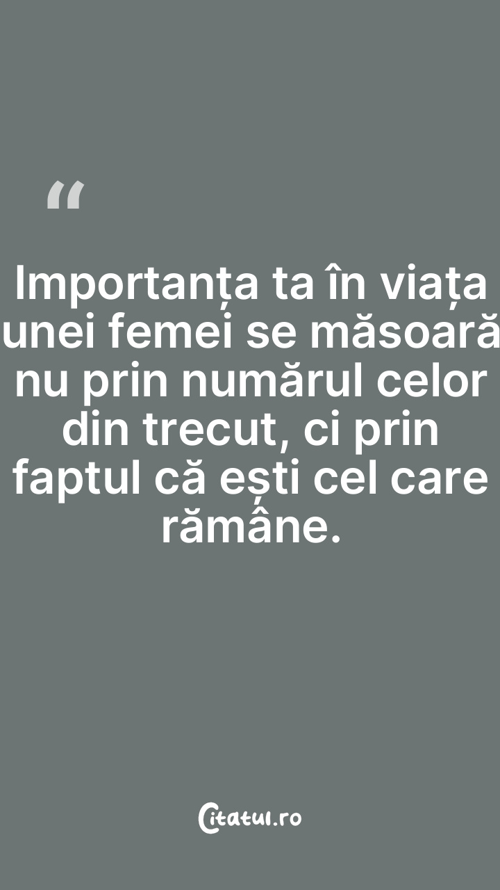 Importanța ta în viața unei femei se măsoară nu prin numărul celor din trecut, ci prin faptul că ești cel care rămâne.