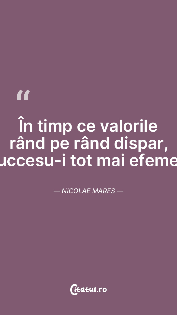 În timp ce valorile rând pe rând dispar, succesu-i tot mai efemer. Nicolae Mares