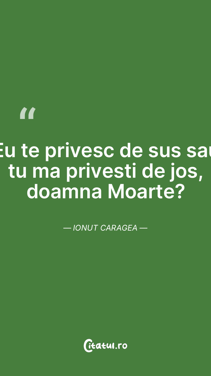 Eu te privesc de sus sau tu ma privesti de jos, doamna Moarte? Ionut Caragea