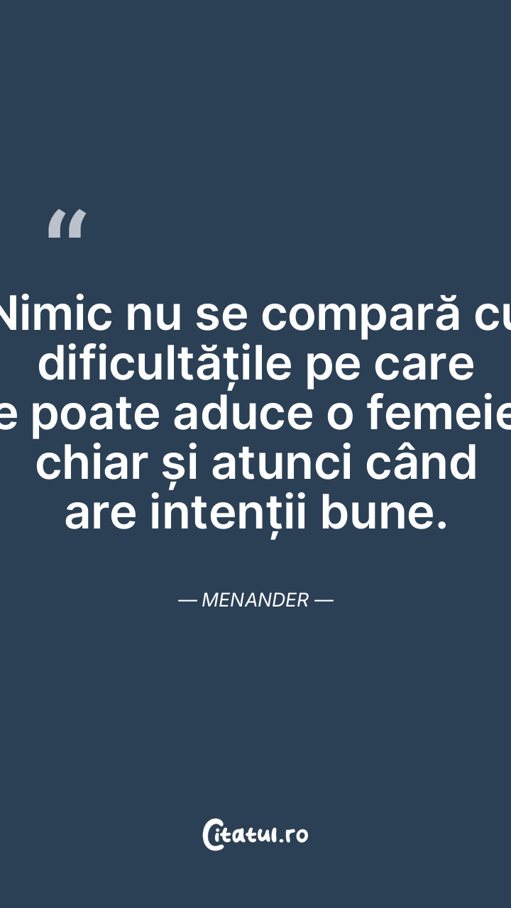 Nimic nu se compară cu dificultățile pe care le poate aduce o femeie, chiar și atunci când are intenții bune. Menander