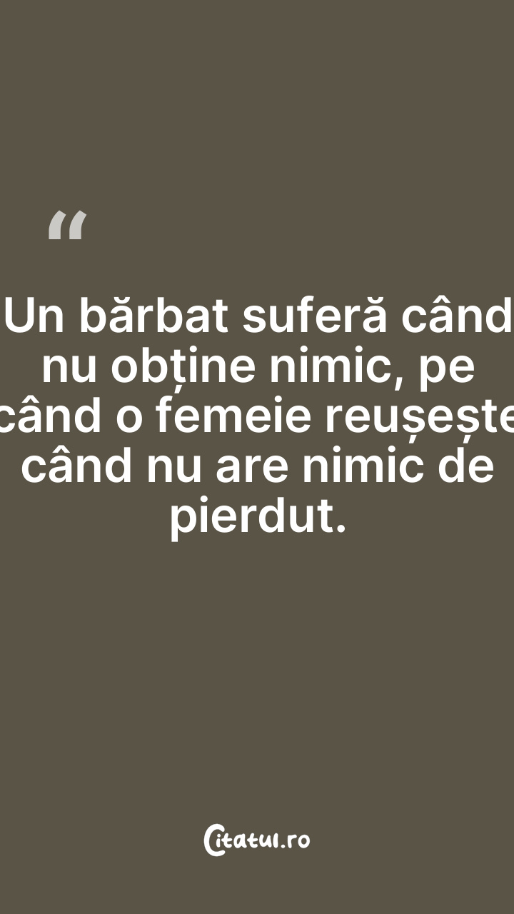 Un bărbat suferă când nu obține nimic, pe când o femeie reușește când nu are nimic de pierdut.