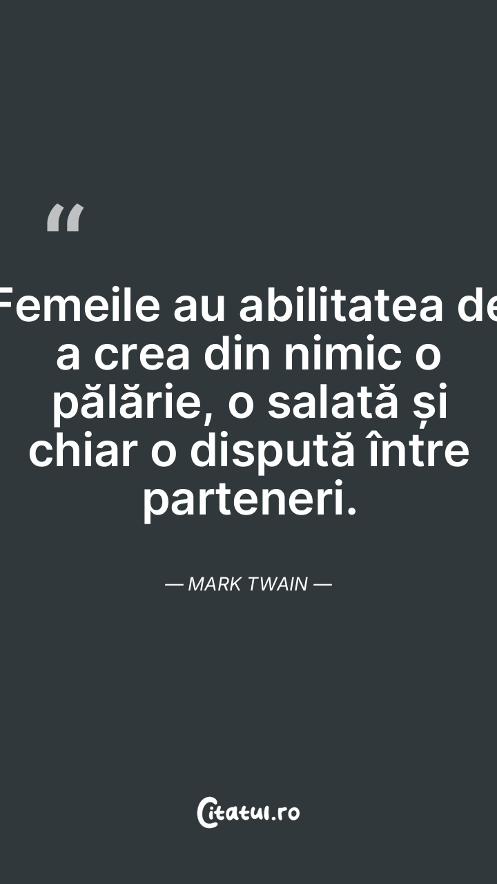 Femeile au abilitatea de a crea din nimic o pălărie, o salată și chiar o dispută între parteneri. Mark Twain