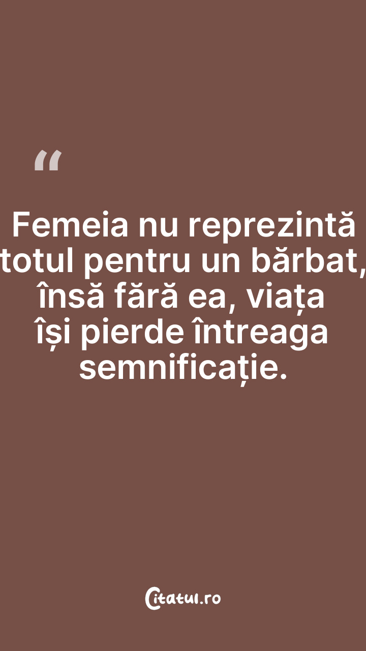 Femeia nu reprezintă totul pentru un bărbat, însă fără ea, viața își pierde întreaga semnificație.