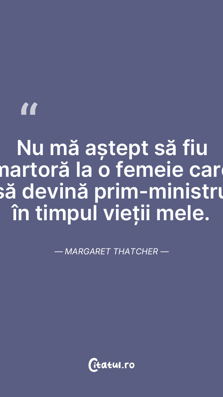Nu mă aștept să fiu martoră la o femeie care să devină prim-ministru în timpul vieții mele. Margaret Thatcher