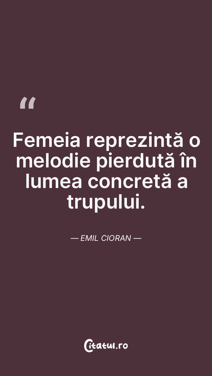 Femeia reprezintă o melodie pierdută în lumea concretă a trupului. Emil Cioran