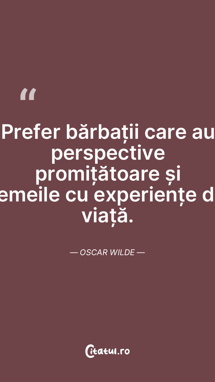 Prefer bărbații care au perspective promițătoare și femeile cu experiențe de viață. Oscar Wilde