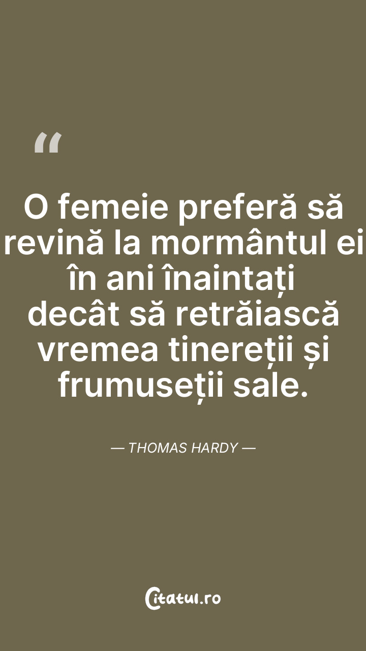 O femeie preferă să revină la mormântul ei în ani înaintați decât să retrăiască vremea tinereții și frumuseții sale. Thomas Hardy