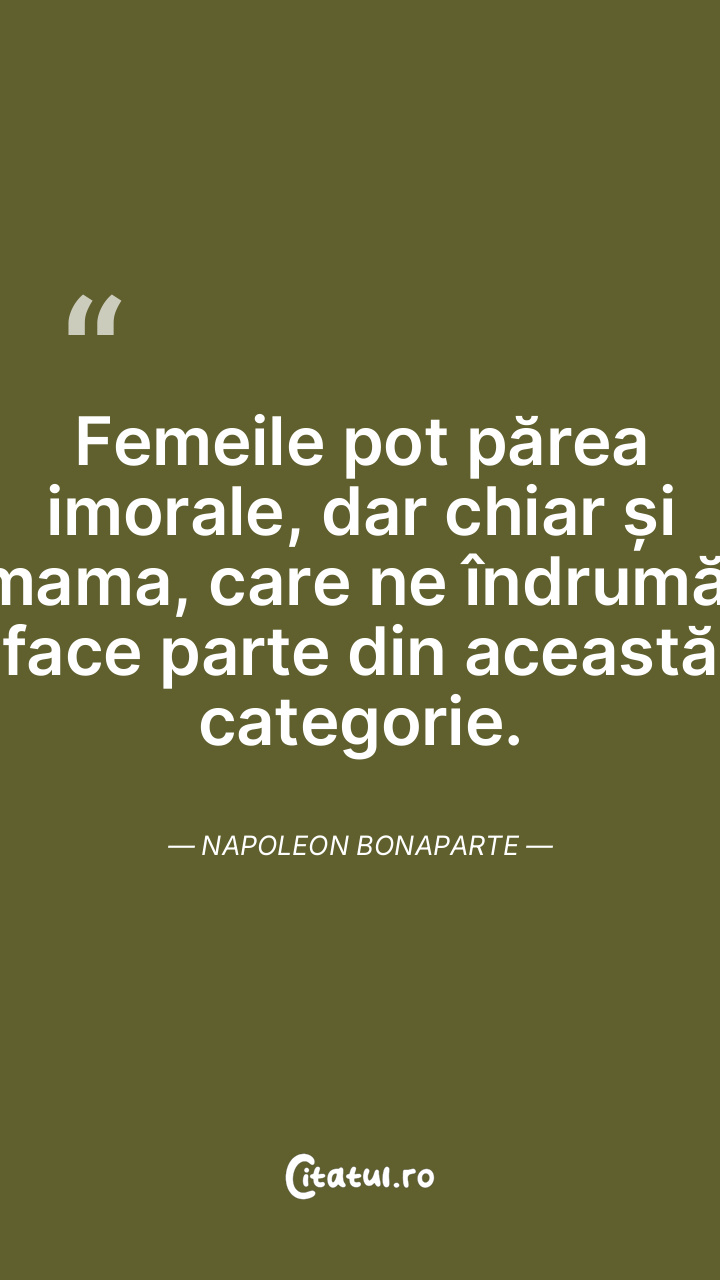 Femeile pot părea imorale, dar chiar și mama, care ne îndrumă, face parte din această categorie. Napoleon Bonaparte