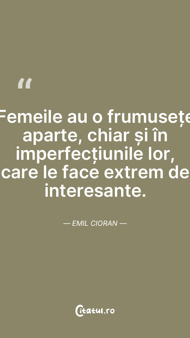 Femeile au o frumusețe aparte, chiar și în imperfecțiunile lor, care le face extrem de interesante. Emil Cioran
