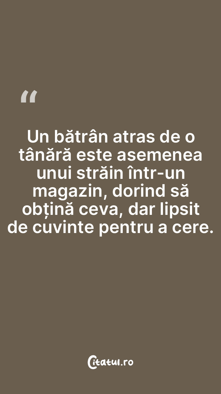 Un bătrân atras de o tânără este asemenea unui străin într-un magazin, dorind să obțină ceva, dar lipsit de cuvinte pentru a cere.