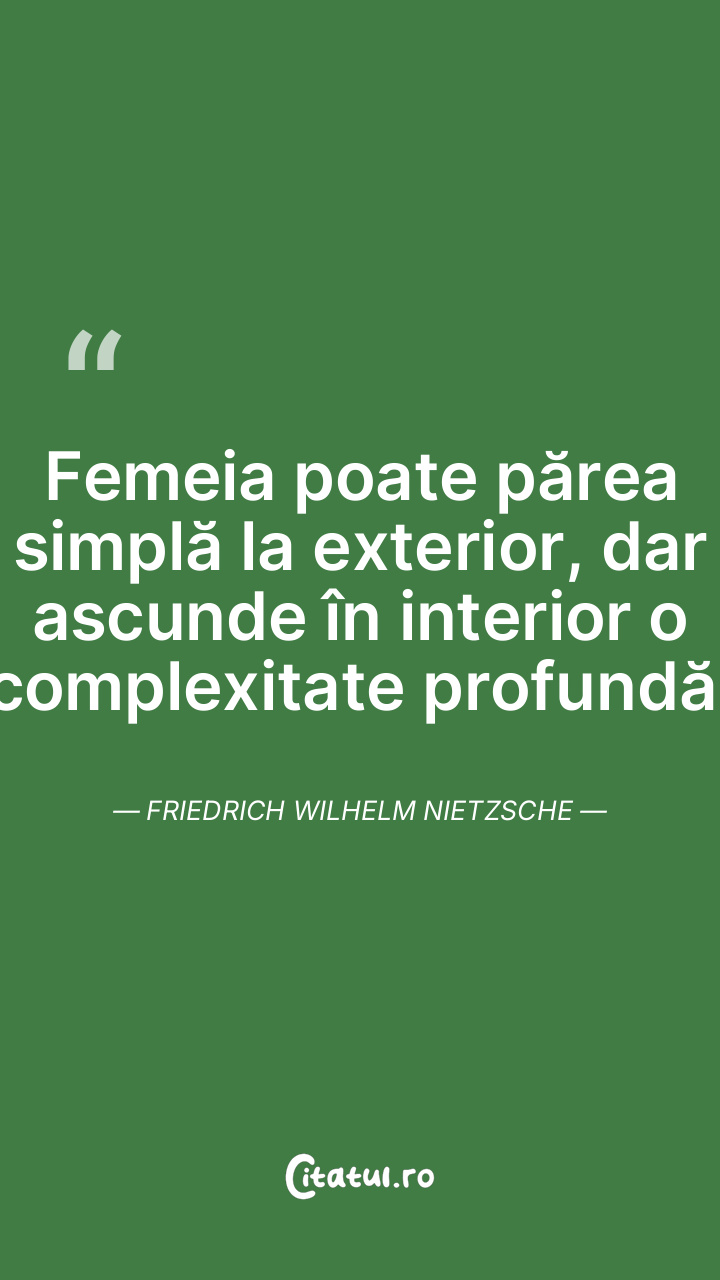 Femeia poate părea simplă la exterior, dar ascunde în interior o complexitate profundă. Friedrich Wilhelm Nietzsche