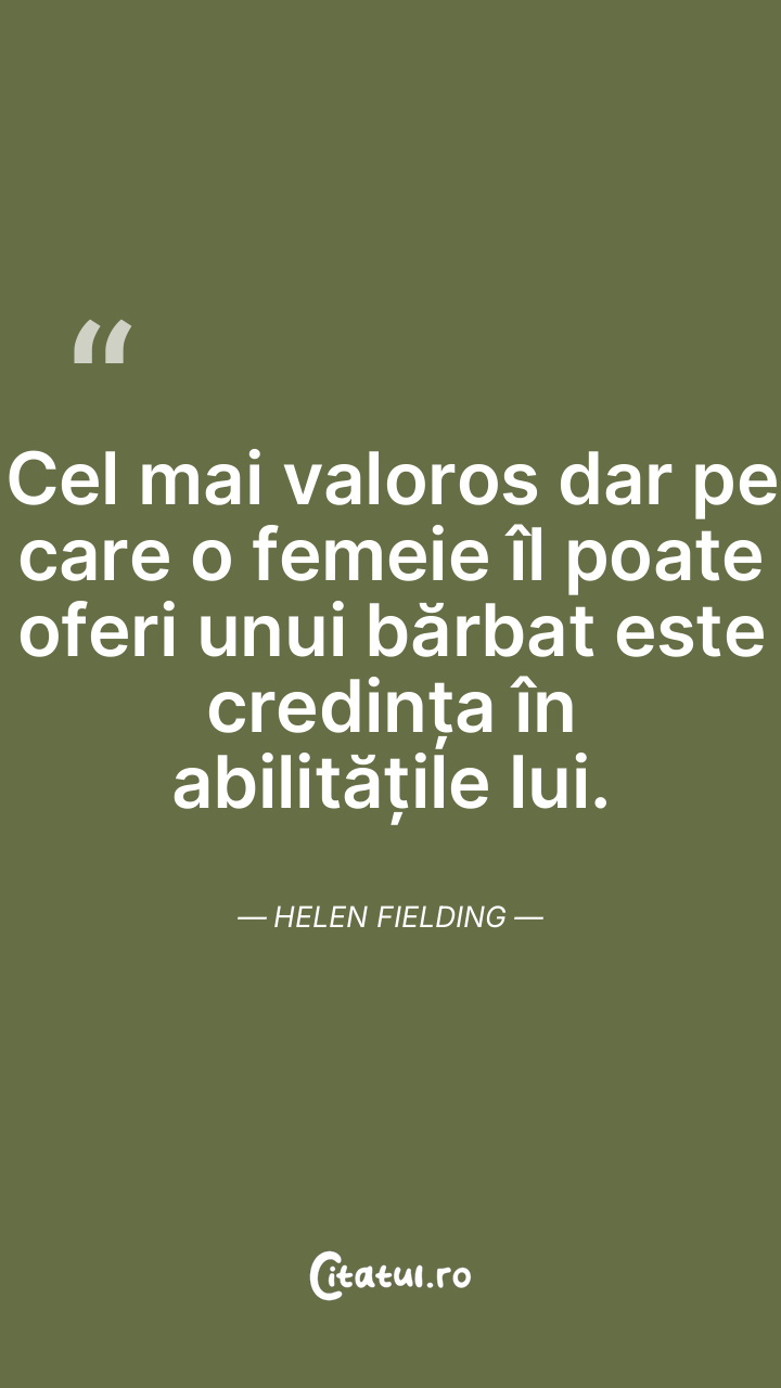 Cel mai valoros dar pe care o femeie îl poate oferi unui bărbat este credința în abilitățile lui. Helen Fielding