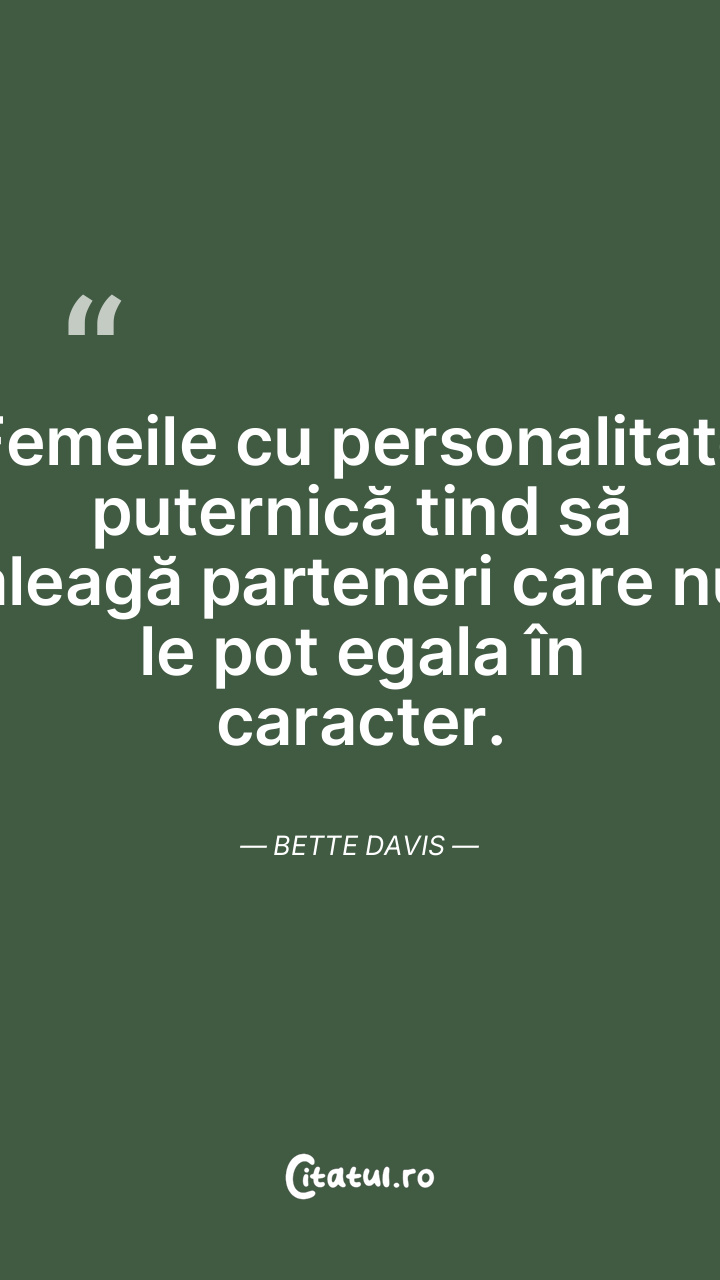 Femeile cu personalitate puternică tind să aleagă parteneri care nu le pot egala în caracter. Bette Davis