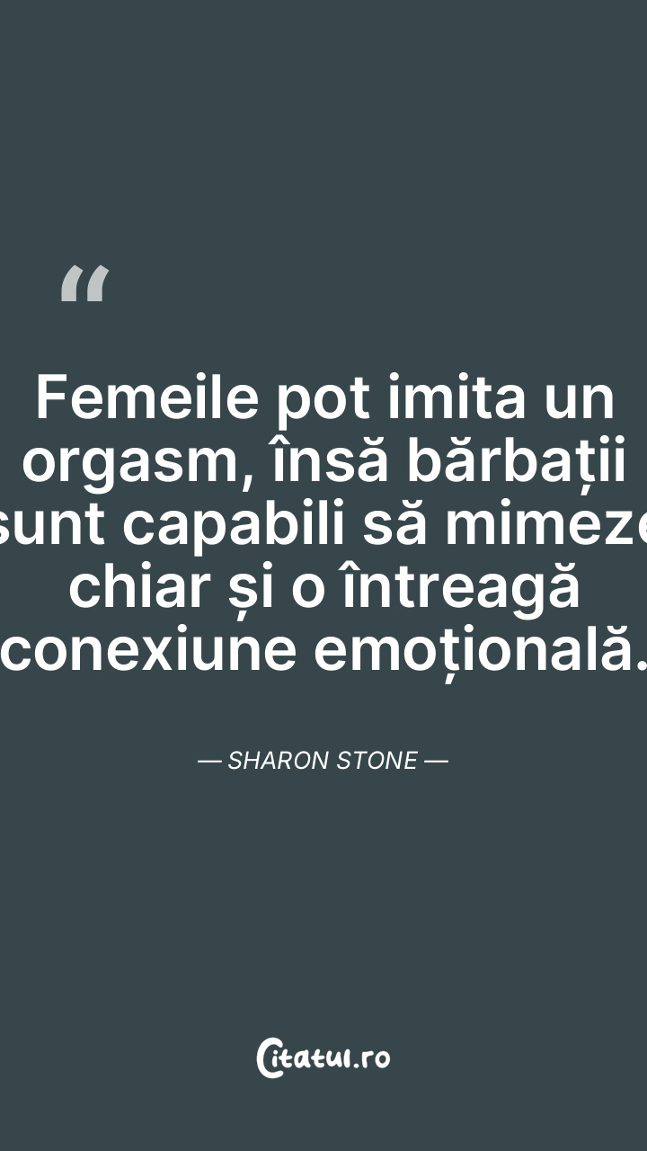 Femeile pot imita un orgasm, însă bărbații sunt capabili să mimeze chiar și o întreagă conexiune emoțională. Sharon Stone