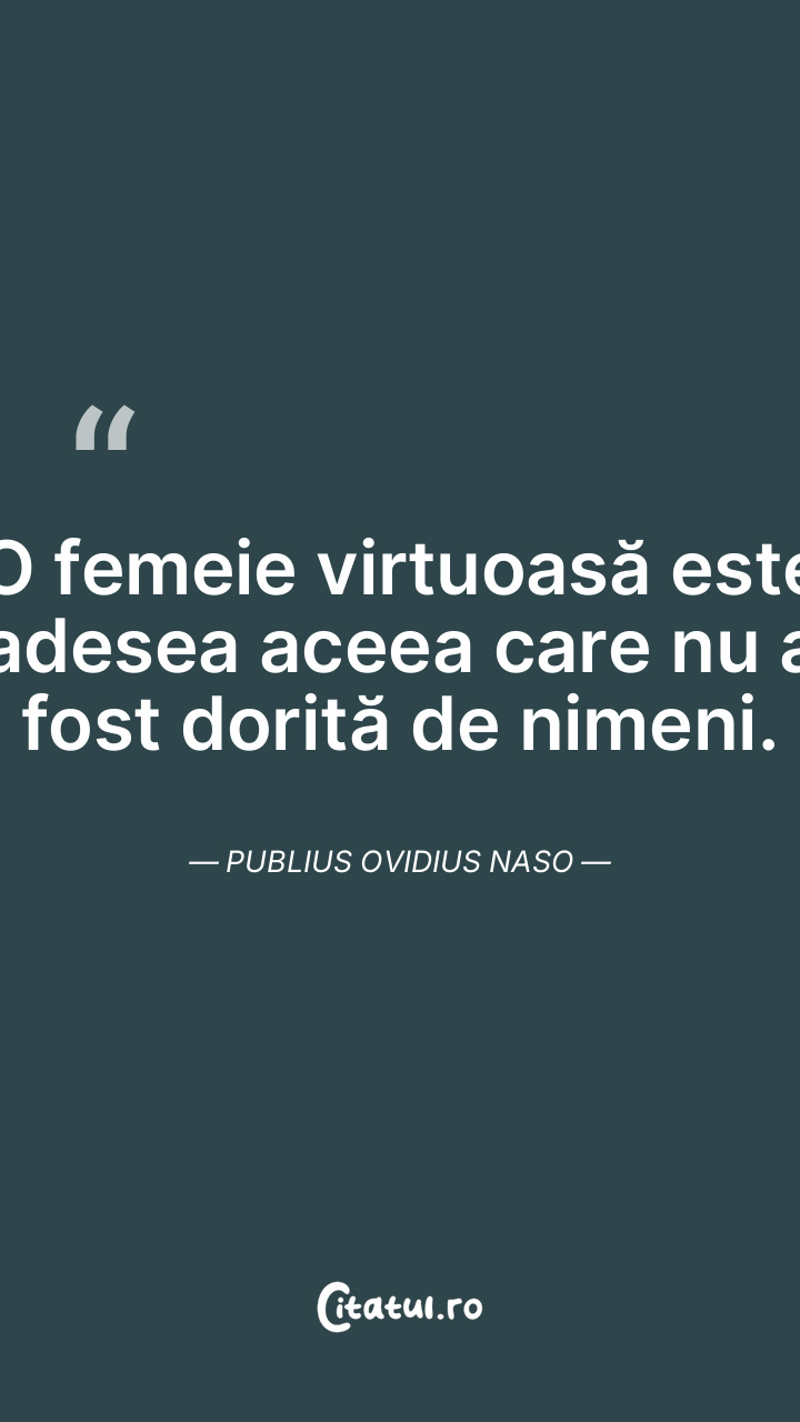 O femeie virtuoasă este adesea aceea care nu a fost dorită de nimeni. Publius Ovidius Naso