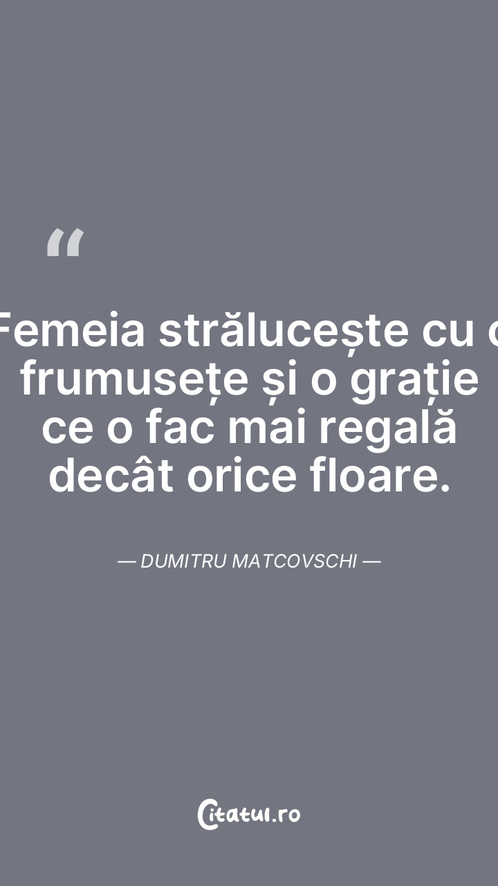 Femeia strălucește cu o frumusețe și o grație ce o fac mai regală decât orice floare. Dumitru Matcovschi