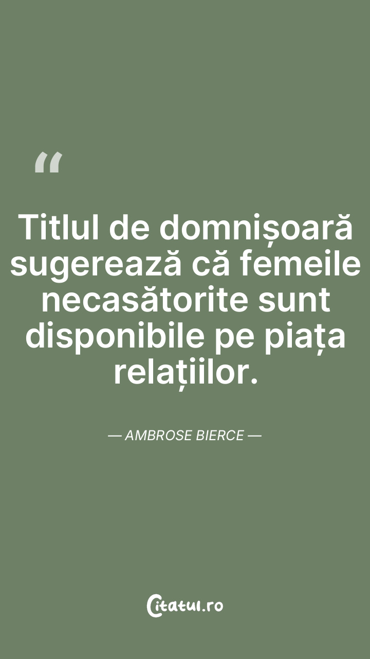 Titlul de domnișoară sugerează că femeile necasătorite sunt disponibile pe piața relațiilor. Ambrose Bierce