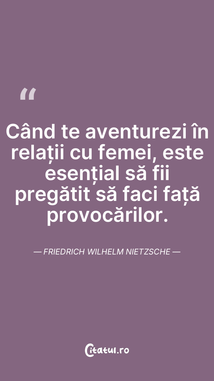 Când te aventurezi în relații cu femei, este esențial să fii pregătit să faci față provocărilor. Friedrich Wilhelm Nietzsche
