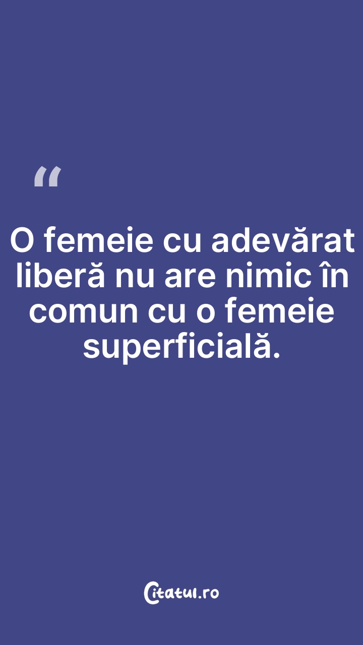O femeie cu adevărat liberă nu are nimic în comun cu o femeie superficială.
