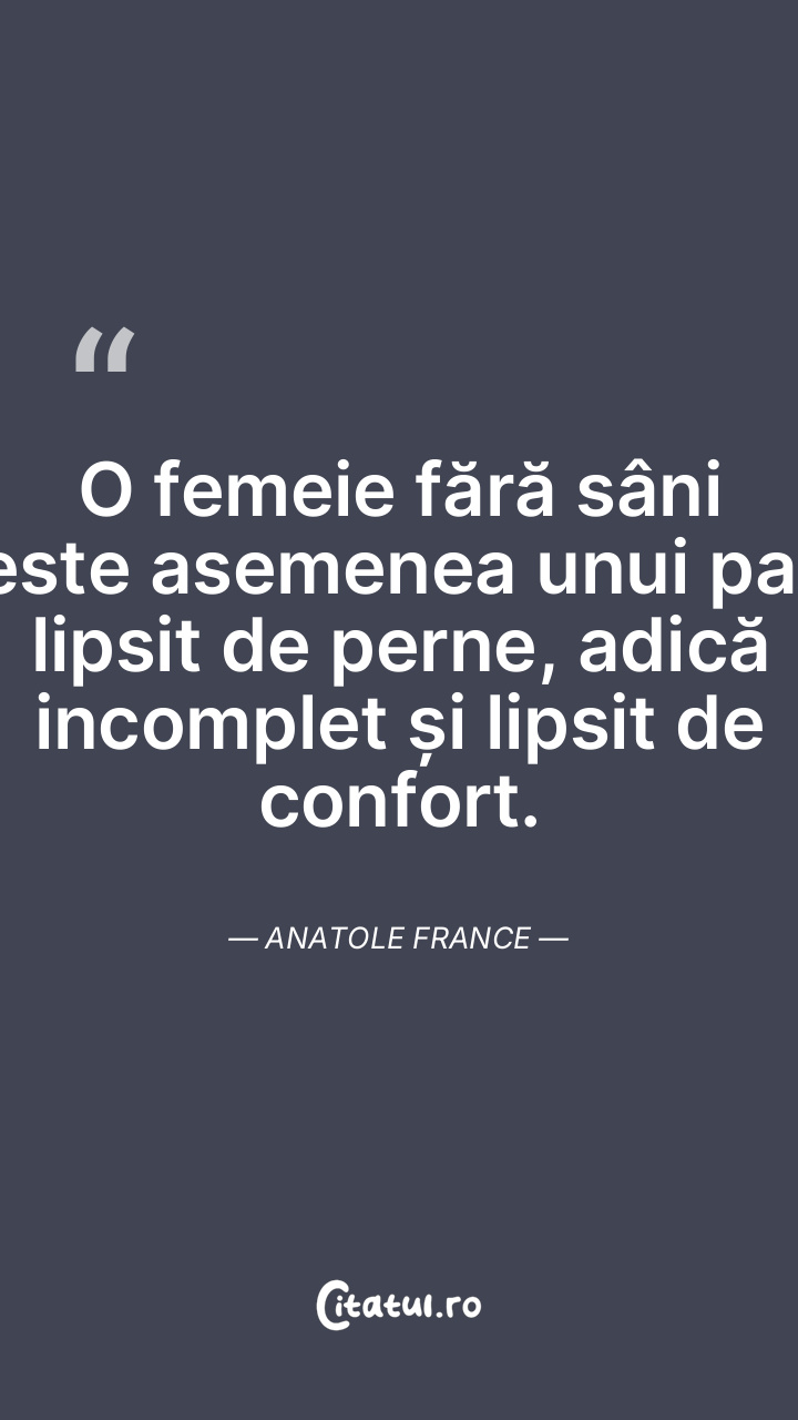 O femeie fără sâni este asemenea unui pat lipsit de perne, adică incomplet și lipsit de confort. Anatole France