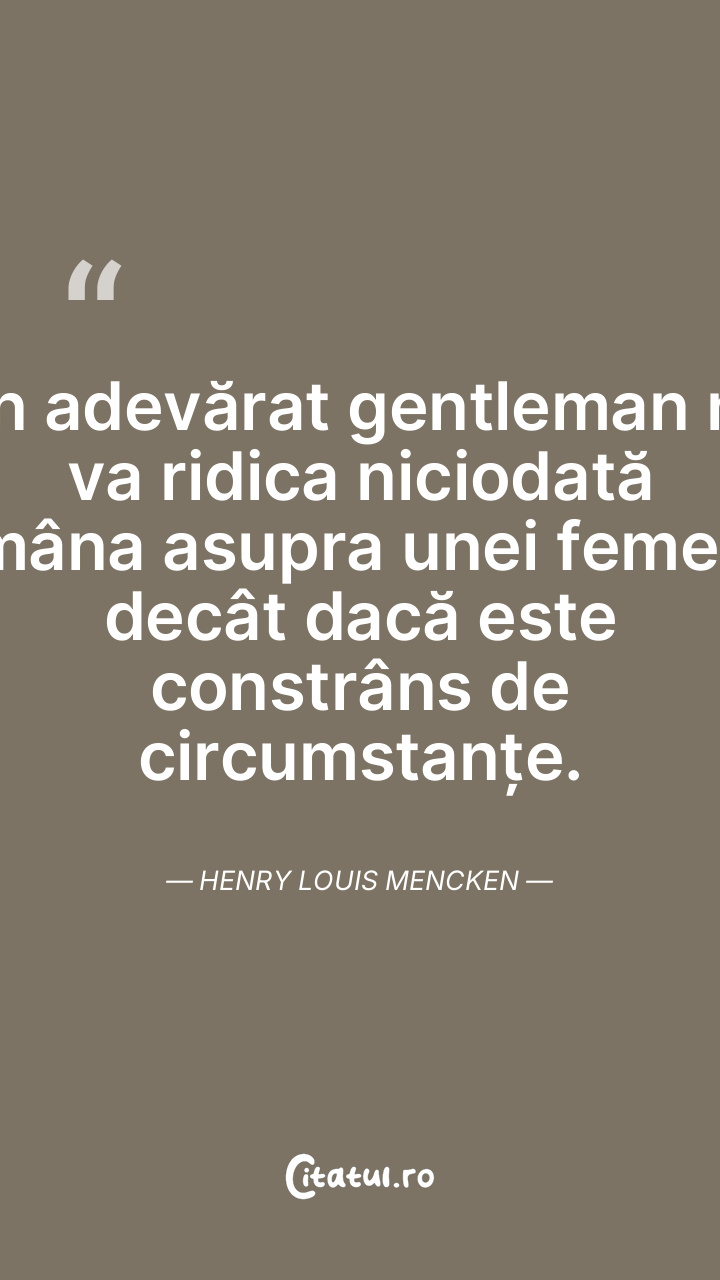 Un adevărat gentleman nu va ridica niciodată mâna asupra unei femei, decât dacă este constrâns de circumstanțe. Henry Louis Mencken