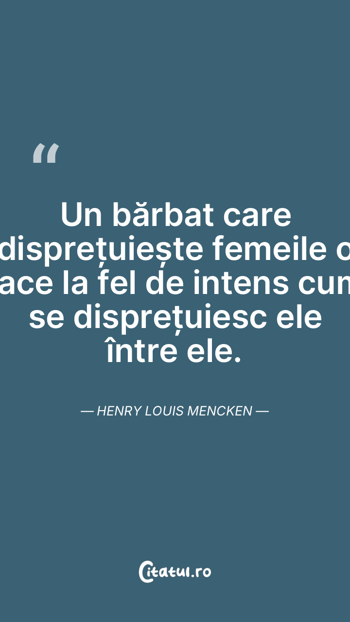 Un bărbat care disprețuiește femeile o face la fel de intens cum se disprețuiesc ele între ele. Henry Louis Mencken