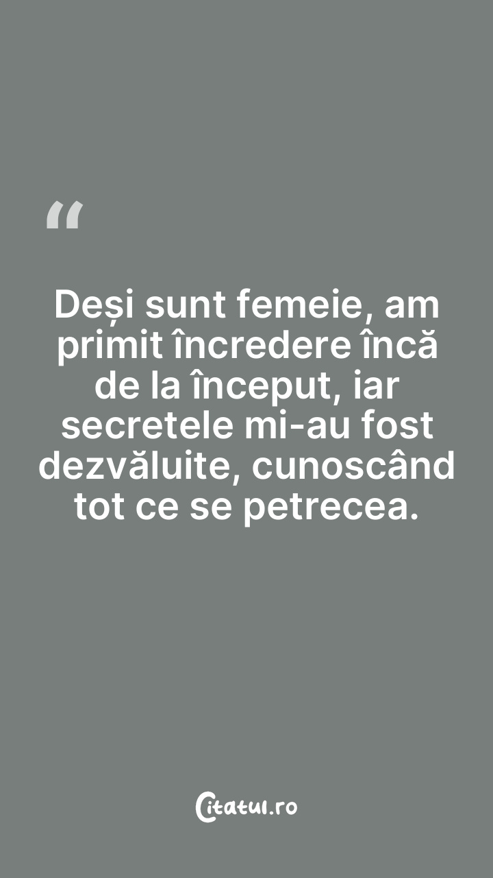 Deși sunt femeie, am primit încredere încă de la î...