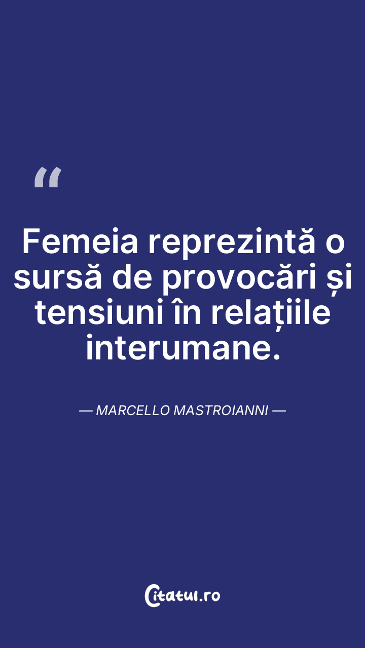 Femeia reprezintă o sursă de provocări și tensiuni în relațiile interumane. Marcello Mastroianni