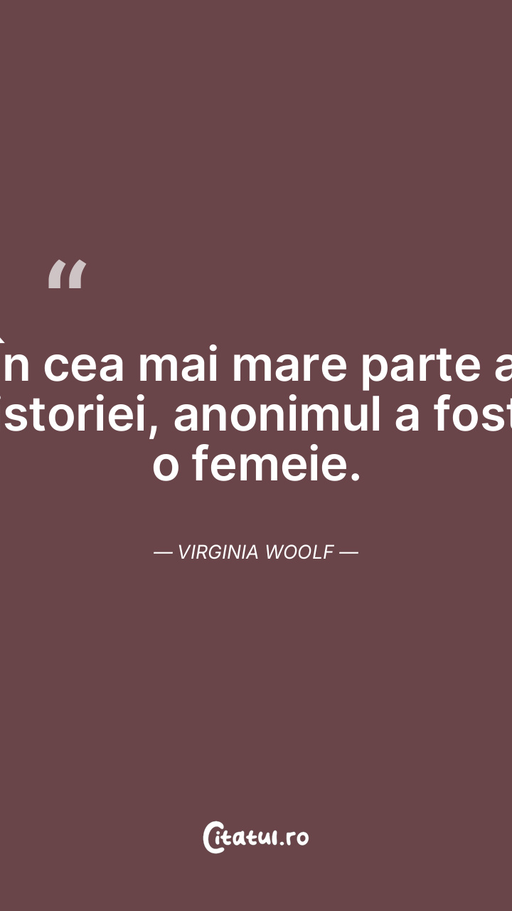 ÃŽn cea mai mare parte a istoriei, anonimul a fost o femeie. Virginia Woolf