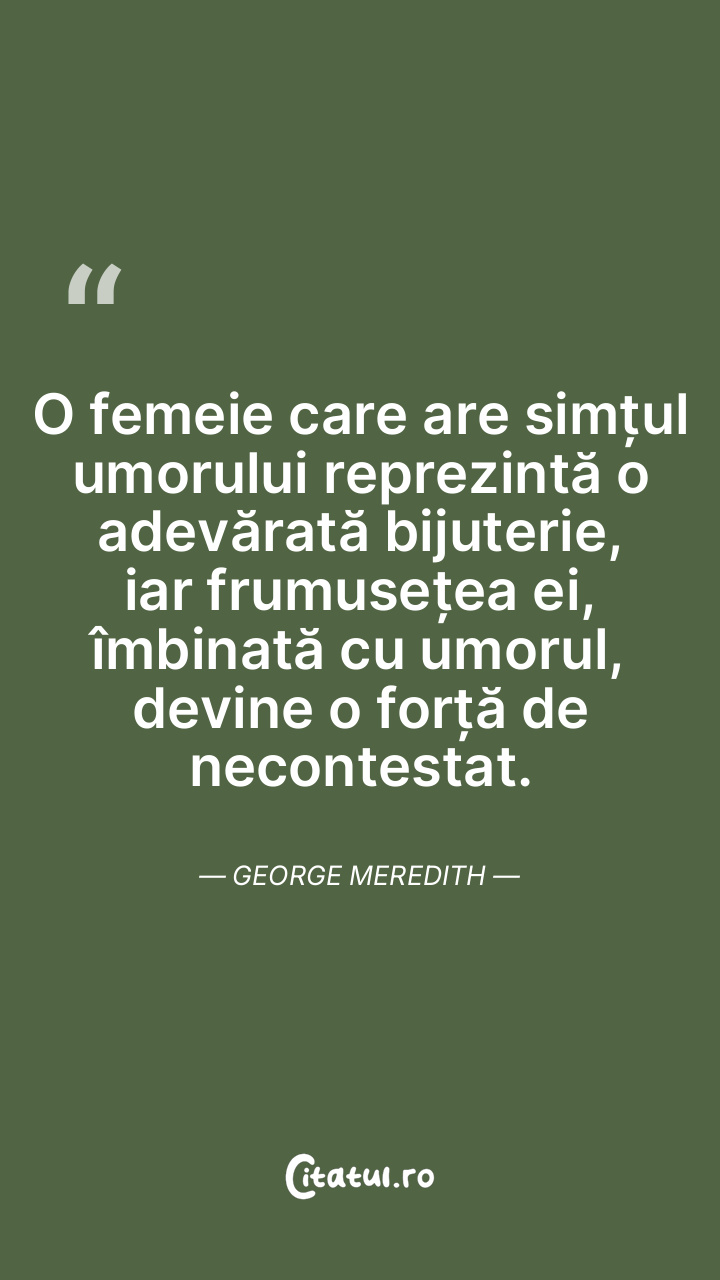 O femeie care are simțul umorului reprezintă o adevărată bijuterie, iar frumusețea ei, îmbinată cu umorul, devine o forță de necontestat. George Meredith