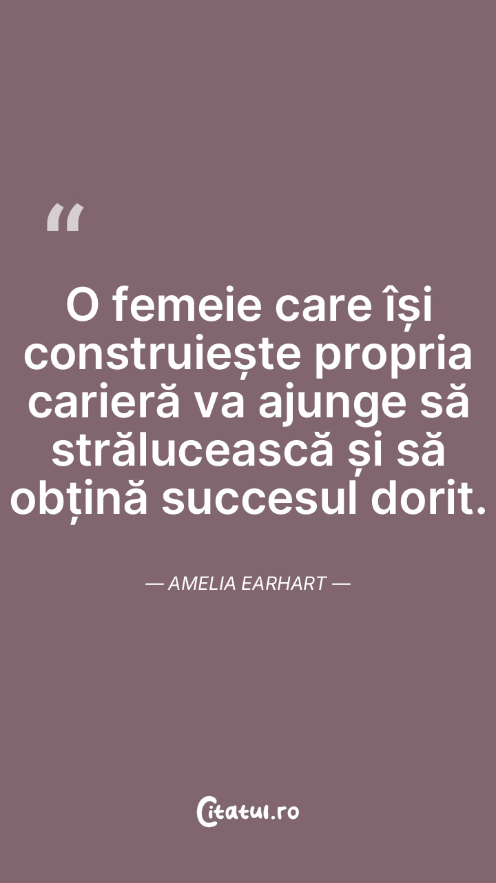 O femeie care își construiește propria carieră va ajunge să strălucească și să obțină succesul dorit. Amelia Earhart