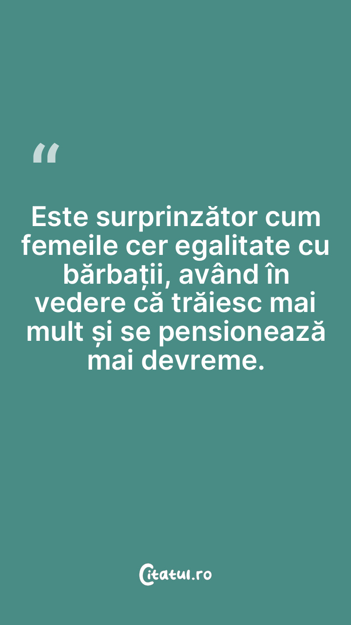 Este surprinzător cum femeile cer egalitate cu bărbații, având în vedere că trăiesc mai mult și se pensionează mai devreme.