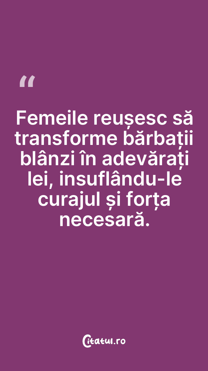 Femeile reușesc să transforme bărbații blânzi în adevărați lei, insuflându-le curajul și forța necesară.