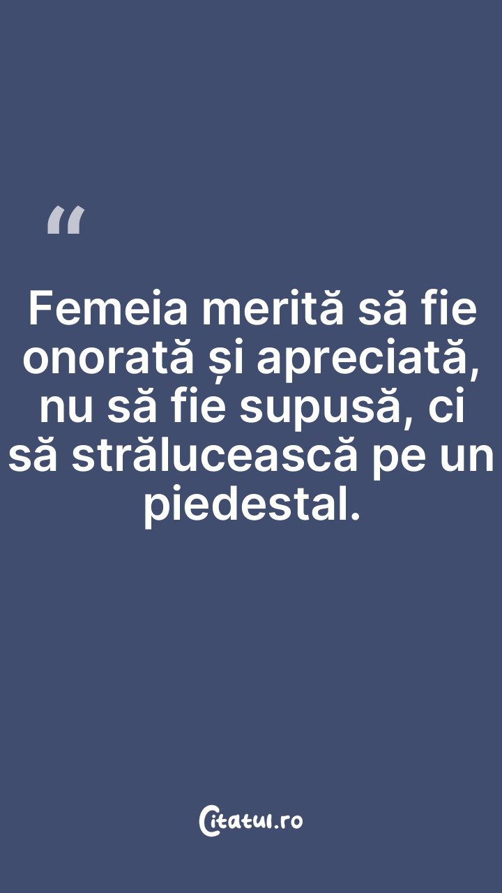 Femeia merită să fie onorată și apreciată, nu să fie supusă, ci să strălucească pe un piedestal.