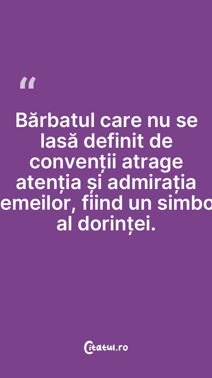 Bărbatul care nu se lasă definit de convenții atrage atenția și admirația femeilor, fiind un simbol al dorinței.