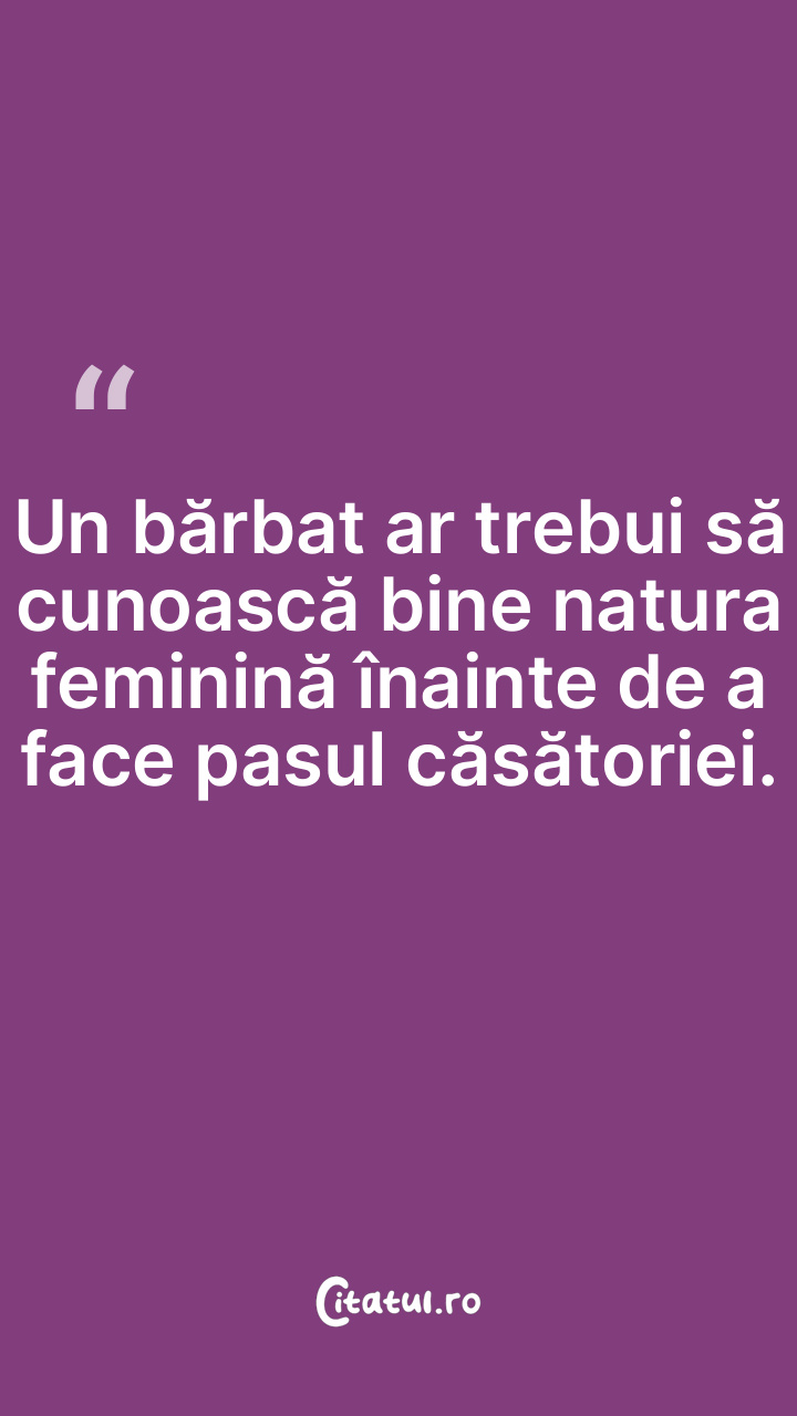 Un bărbat ar trebui să cunoască bine natura feminină înainte de a face pasul căsătoriei.