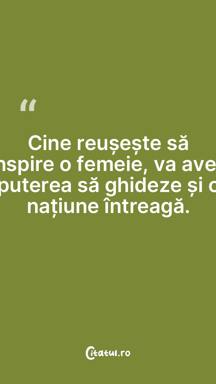 Cine reușește să inspire o femeie, va avea puterea să ghideze și o națiune întreagă.