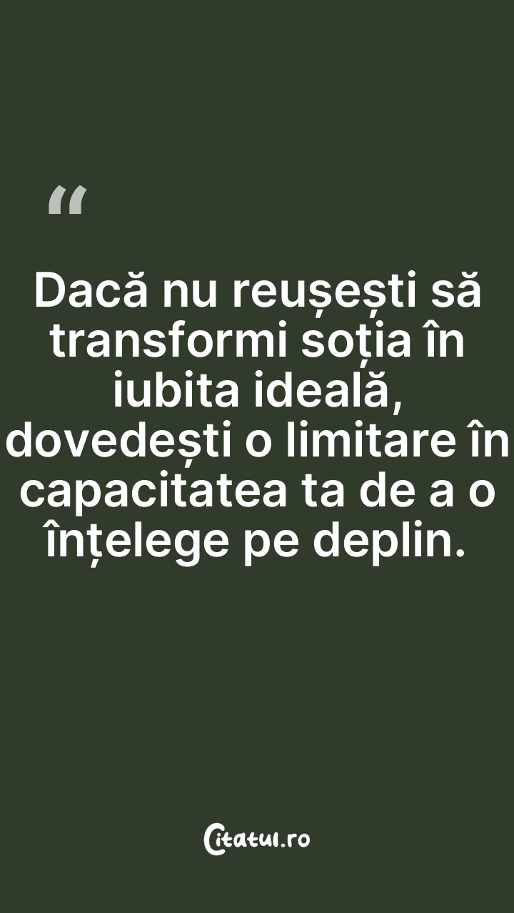 Dacă nu reușești să transformi soția în iubita ideală, dovedești o limitare în capacitatea ta de a o înțelege pe deplin.
