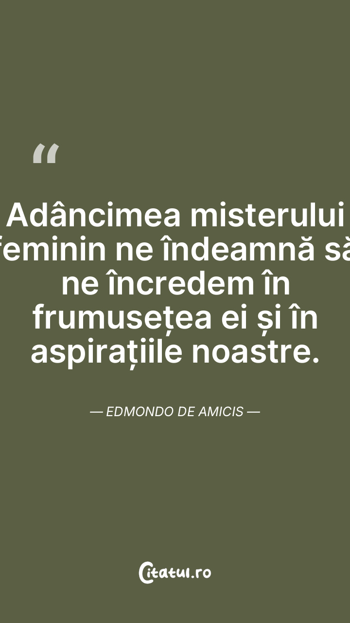 Adâncimea misterului feminin ne îndeamnă să ne încredem în frumusețea ei și în aspirațiile noastre. Edmondo De Amicis