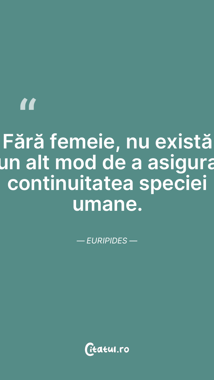 Fără femeie, nu există un alt mod de a asigura continuitatea speciei umane. Euripides