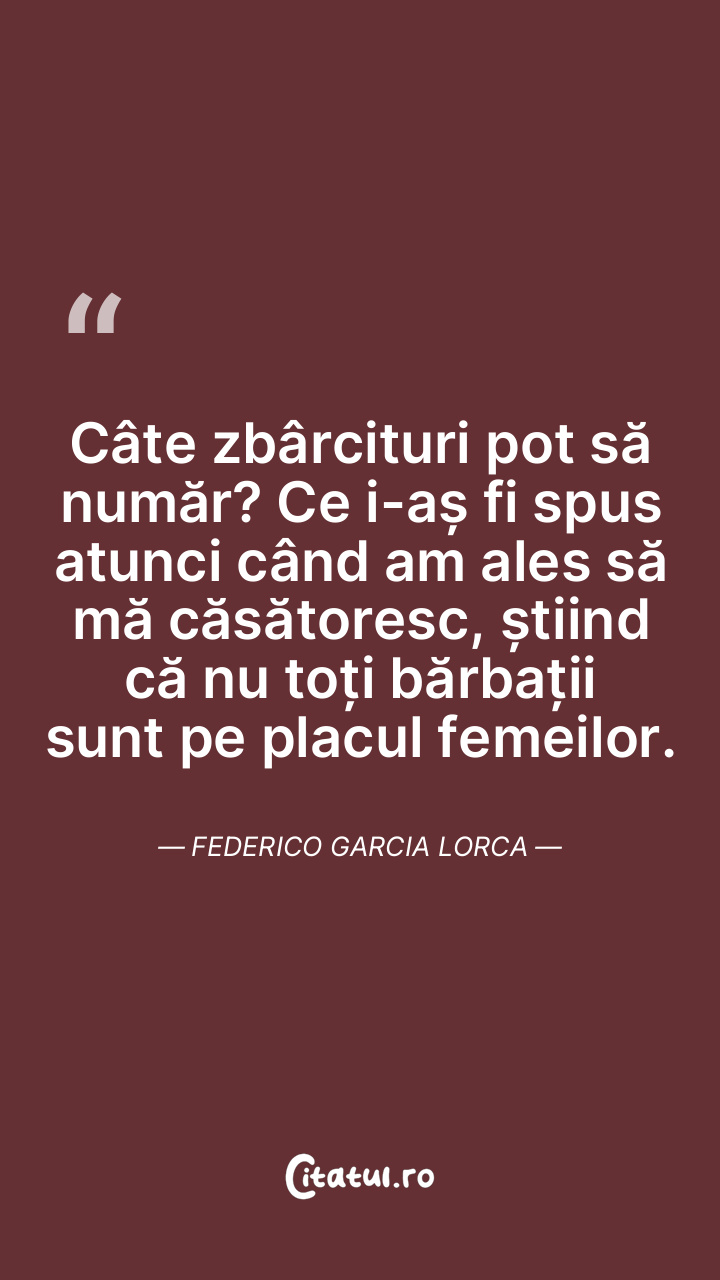 Câte zbârcituri pot să număr? Ce i-aș fi spus atunci când am ales să mă căsătoresc, știind că nu toți bărbații sunt pe placul femeilor. Federico Garcia Lorca