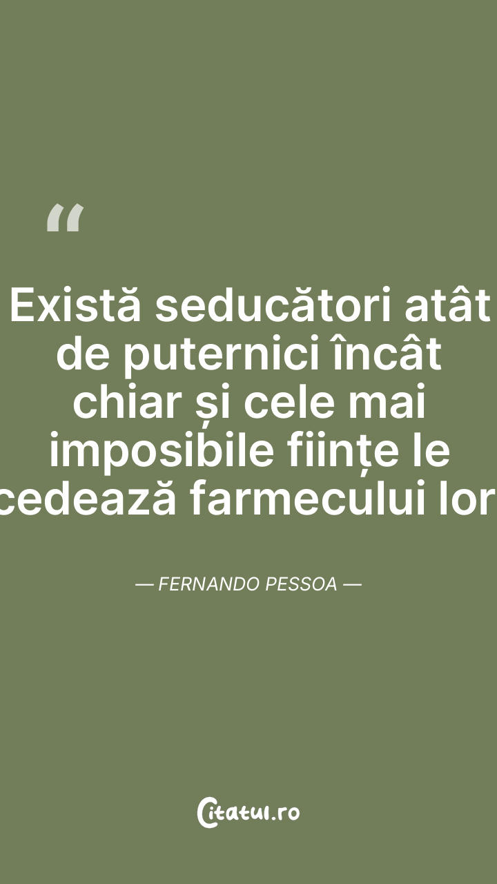 Există seducători atât de puternici încât chiar și cele mai imposibile ființe le cedează farmecului lor. Fernando Pessoa