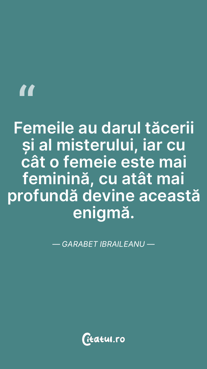 Femeile au darul tăcerii și al misterului, iar cu cât o femeie este mai feminină, cu atât mai profundă devine această enigmă. Garabet Ibraileanu