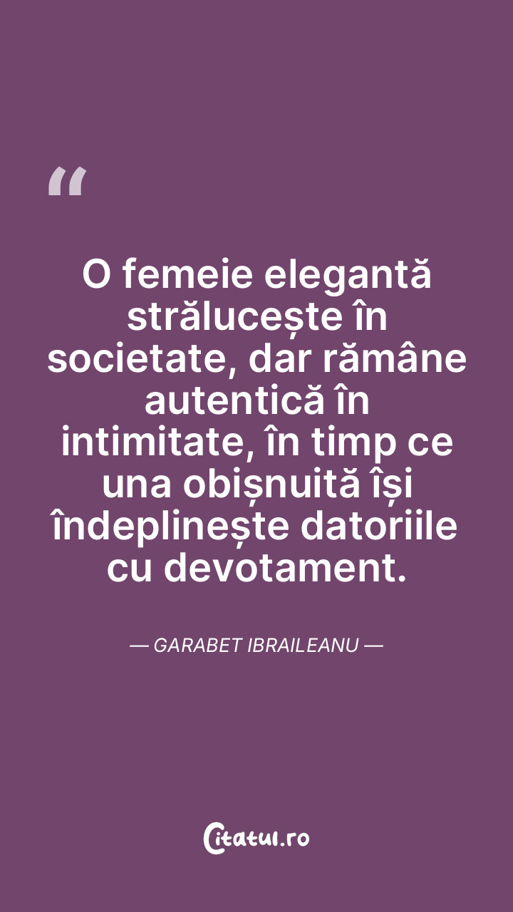 O femeie elegantă strălucește în societate, dar rămâne autentică în intimitate, în timp ce una obișnuită își îndeplinește datoriile cu devotament. Garabet Ibraileanu